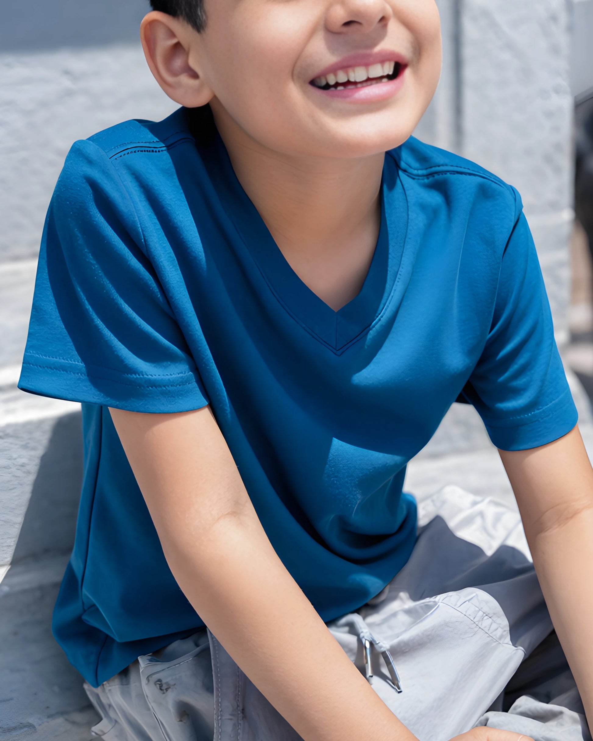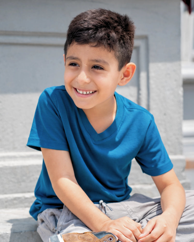 Ligero, fresco y fácil de llevar. Confeccionado en algodón Pima de alta calidad, su tejido suave permite moverse con comodidad, manteniendo una sensación limpia y respirable.De corte regular fit, su diseño de cuello V aporta un toque distinto sin perder simplicidad, ideal para acompañar cada momento con naturalidad.