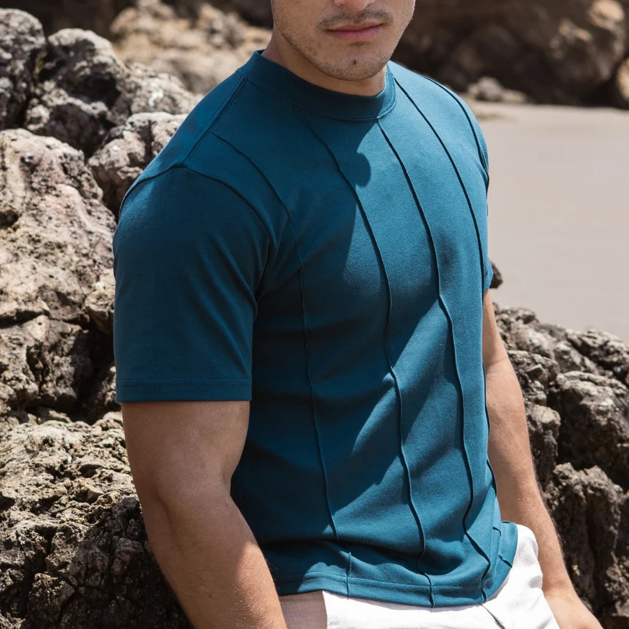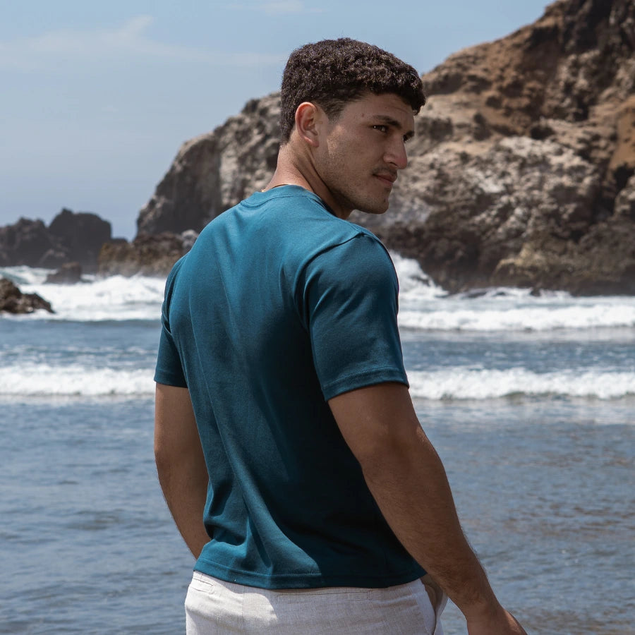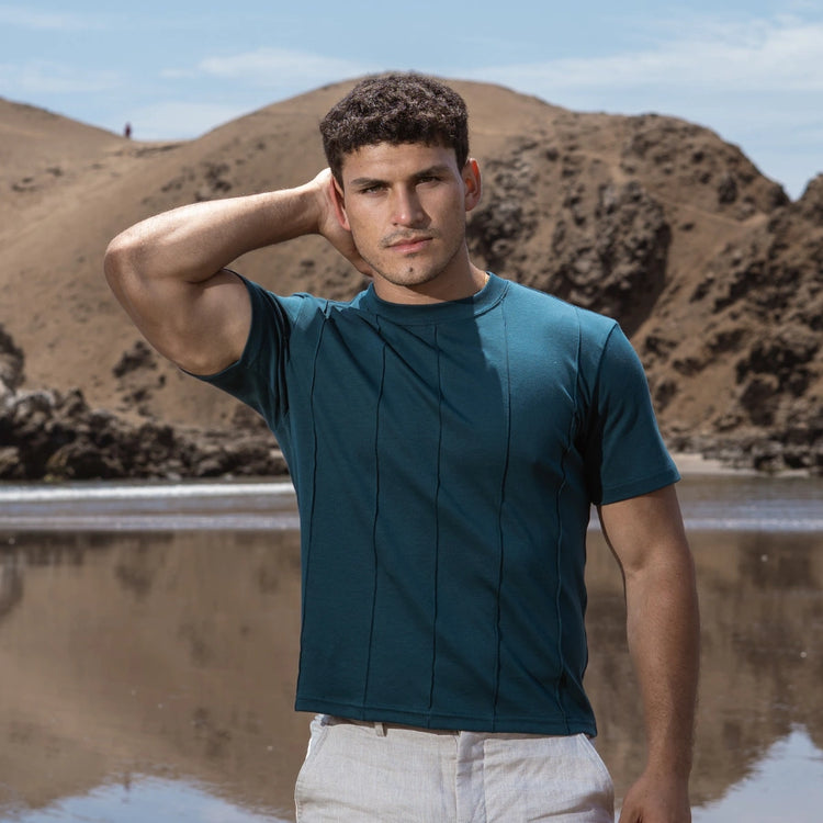 Polo en algodón Pima de alta calidad, suave y confortable al tacto. Su acabado con venas verticales añade carácter sin perder ligereza ni fluidez.