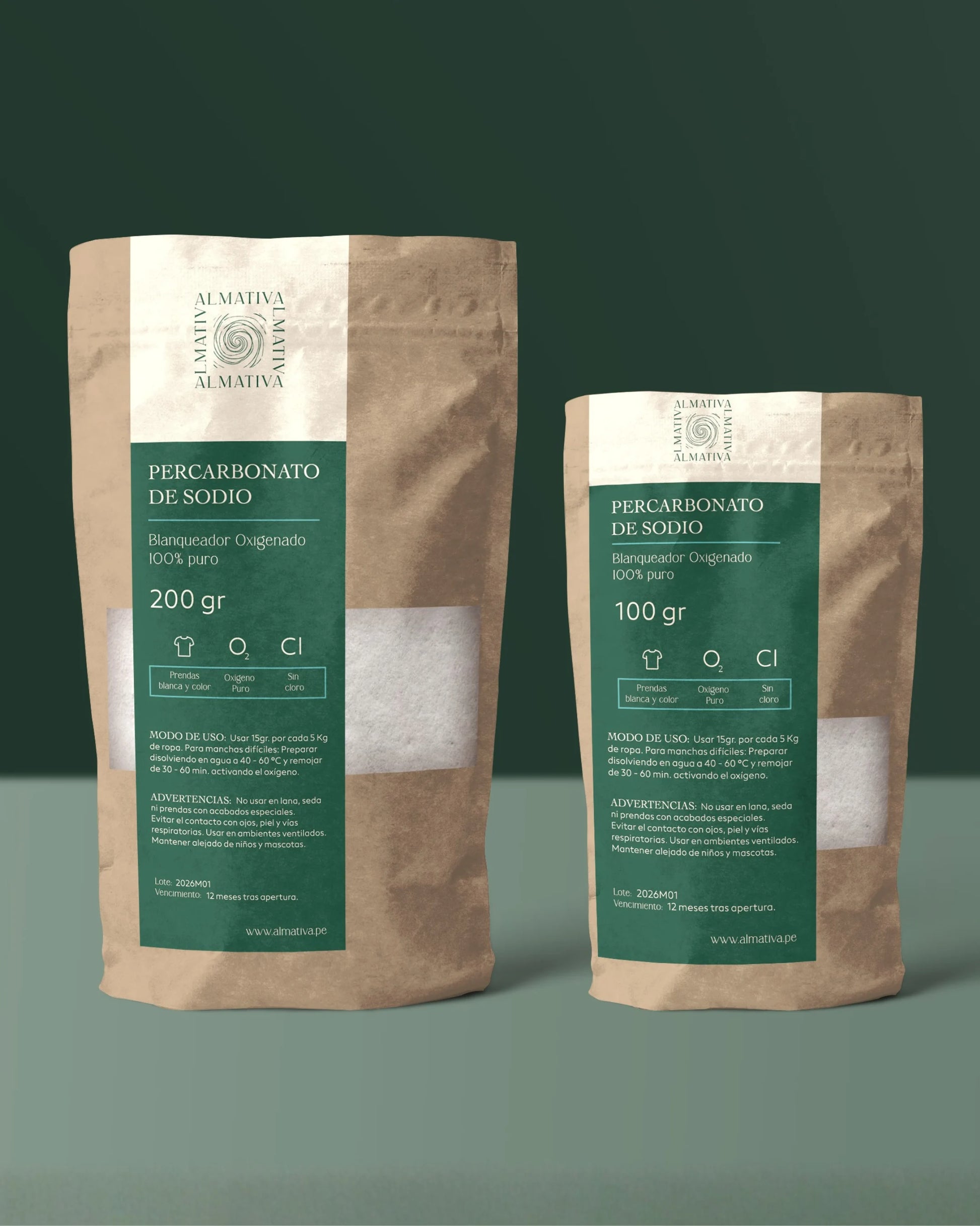 O percarbonato de sódio é um ativador de limpeza que ajuda a remover manchas e a manter a pureza da cor sem recorrer a produtos químicos agressivos como o cloro. É ideal quando a sua peça precisa de uma limpeza mais profunda, respeitando as fibras naturais do algodão.